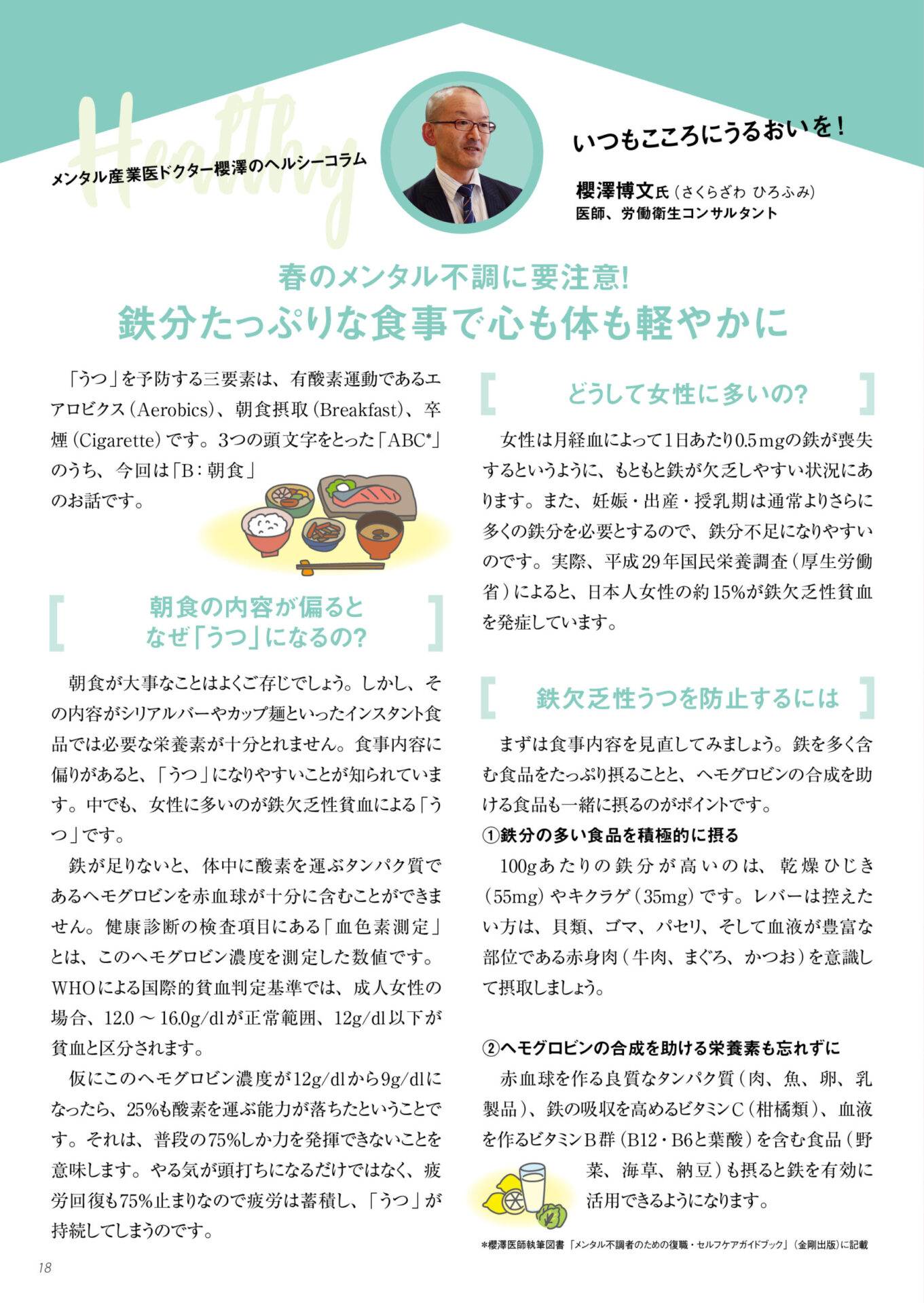 健康経営に長けたメンタル産業医の命名者が創設したことで知られる合同会社パラゴン(東京都港区)代表の櫻澤博文の書いた『メンタル産業医 ドクター櫻澤のヘルシーコラム いつもこころにうるおいを! 春のメンタル不調に要注意! 鉄分たっぷりな食事で心も体も軽やかに』が、「あざみ野STYLE vol.41 2020SPRING号」に掲載されました。