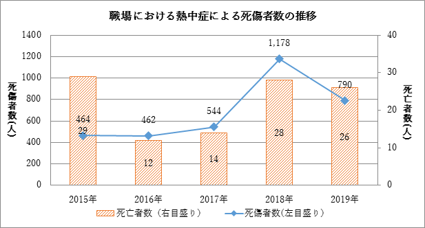 出典:2019年「職場における熱中症による死傷災害の発生状況(速報値)」