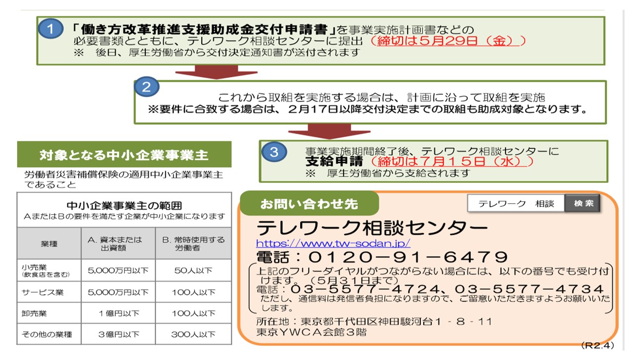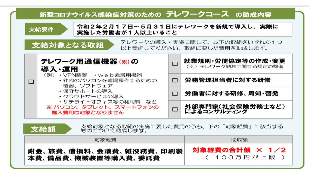 ☆働き方改革推進支援助成金(テレワークコース)