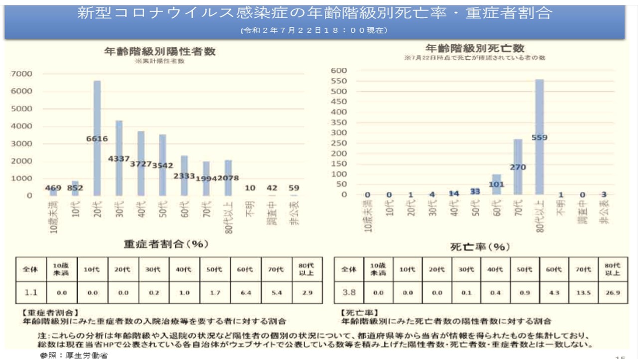 ・重症者数 全国(7/22):54人(2%) 東京都(7/29):22人(6%)と少数にすぎない。