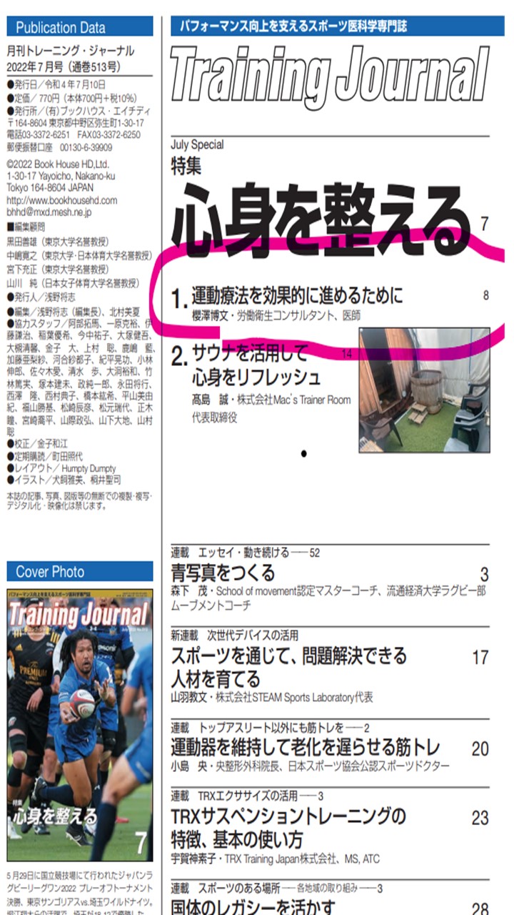 トレーニング・ジャーナル2022年7月号に文章が掲載されたのがメンタル産業医命名者が創設した合同会社パラゴン(東京都港区)代表社員 櫻澤博文です。
