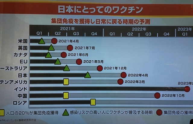 そして図にあるように、集団免疫が成立するのは2022年3月との見通しを立てる人もいます。