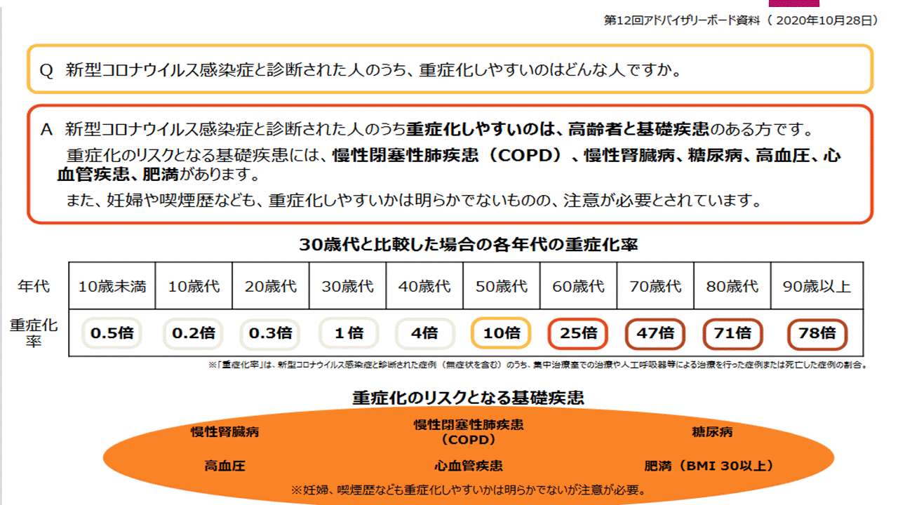 参考サイト:産業医による健康経営対策㉖|基礎疾患の定義発表、二大クラスター発生源