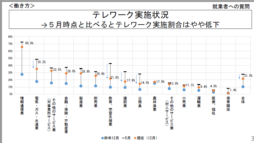 残念ながら内閣府による2020年12月時点での確認結果は以下のように、デジタル化が進展していないには行政だけではないような結果でした。