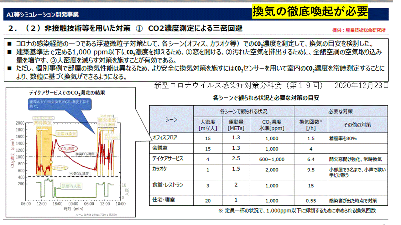 産業技術総合研究所より、どれくらいの頻度で換気したらよいのか示されました。