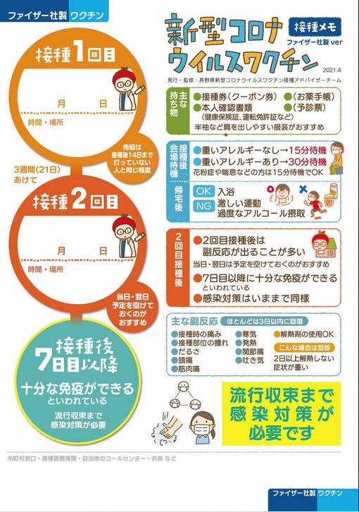 長野県新型コロナウイルスワクチン接種アドバイザーチームにおる副反応の説明やワクチン接種支援情報を紹介します。
