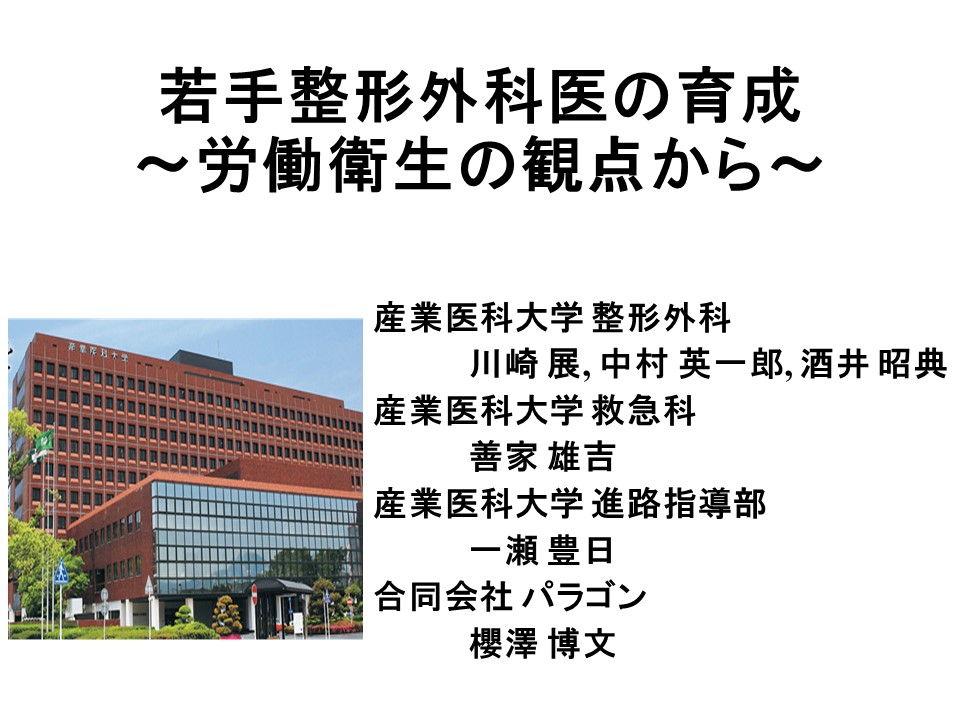 そこで整形外科医がより働きやすくする方法や対策を集約し、学会参加者に修学してもらうことで、明日の整形外科を取り巻く状況を改善することを目的としたシンポジウム52「若手整形外科医の育成―労働衛生の観点から―」が6月10日 から7月12日 までWEB開催中の第94回日本整形外科学会学術総会(以下、学会、URL:http://www.joa2021.jp/app/index.html)にて企画され、産業医科大学整形外科学講師川崎展(まこと)医師による講演が発表されました。