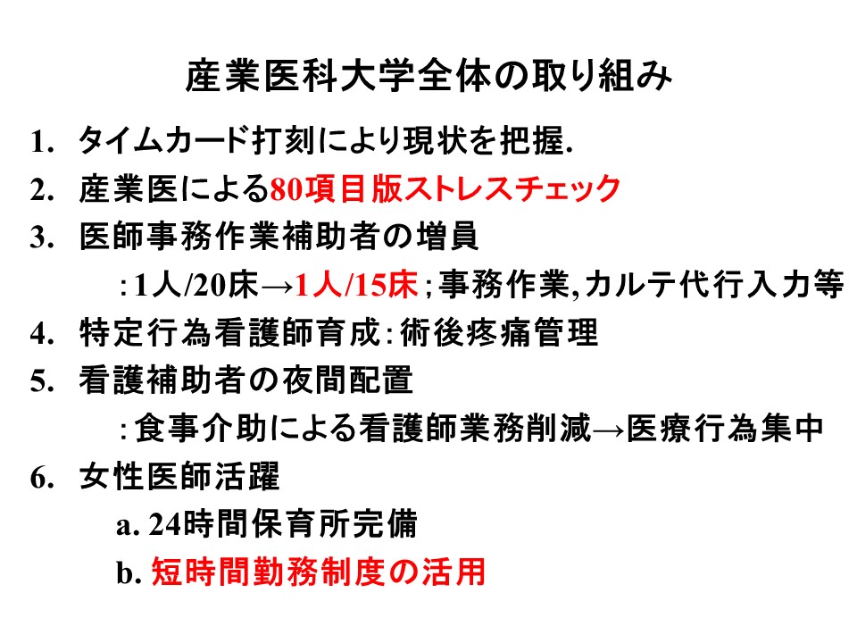 ・快適職場形成に向け、医療機関として時間外労働削減のための具体的対応手段と80項目版ストレスチェックを活用した労働監査