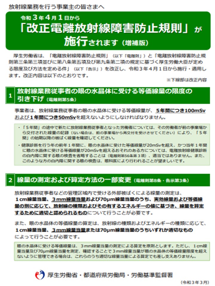 出典:厚生労働省.【令和3年4月1日施行】改正電離放射線障害防止規則及び関連事業について