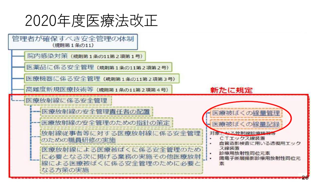 また、2020年の医療法改正にて、医療放射線被ばく軽減の実効性を高める改正がなされました。
