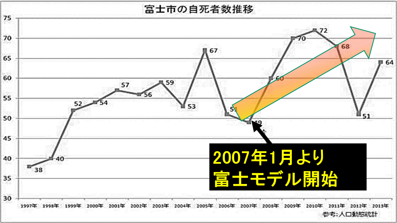 くわえて 「富士モデル」はかえって自死を増やした「不治も出る」に成り下がったという結末を第106回日本精神神経学会総会にて検証