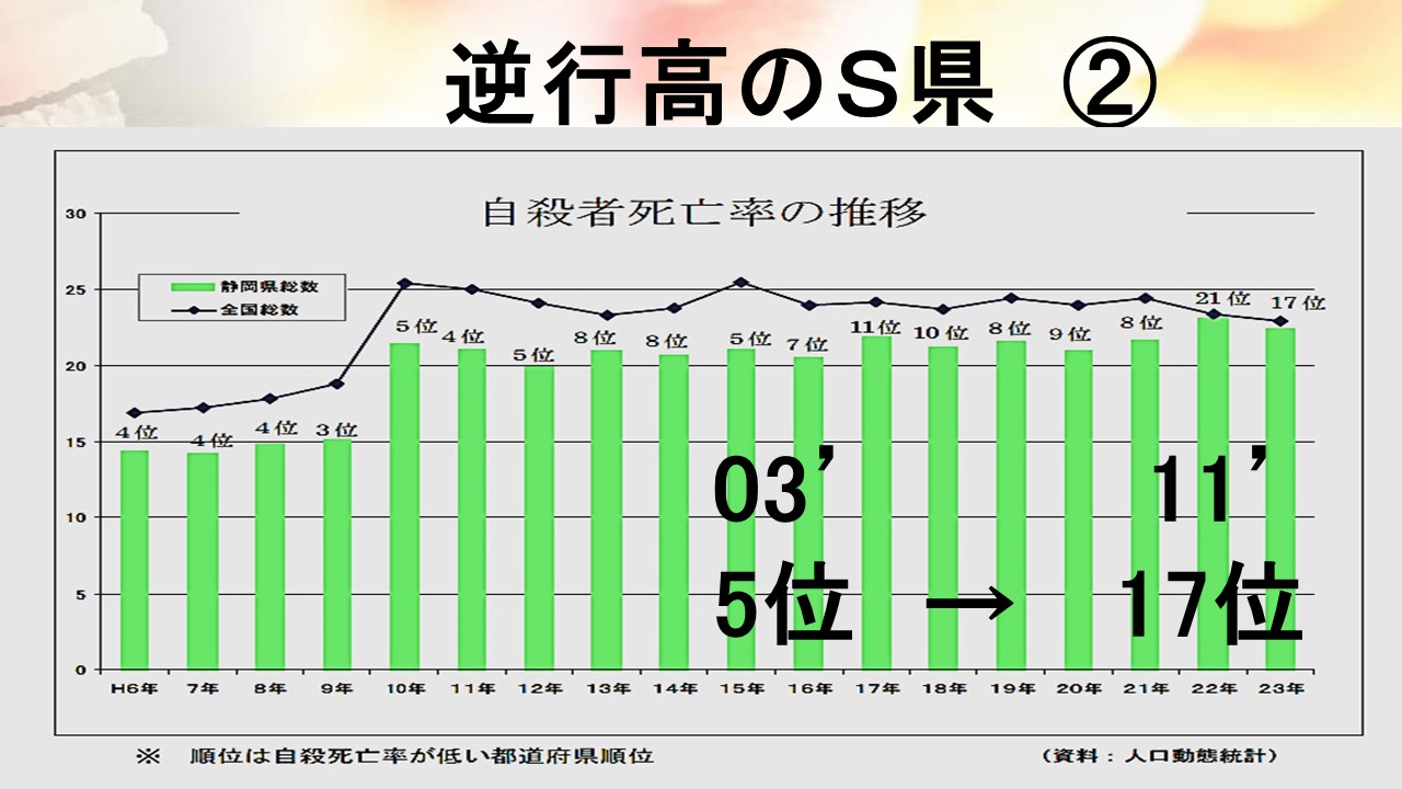 自死の理由の大半は健康問題(欠食や虚食も含む)なところ、間違った施策を実行した富士市とその位置する静岡県、自死者を増加させていた。