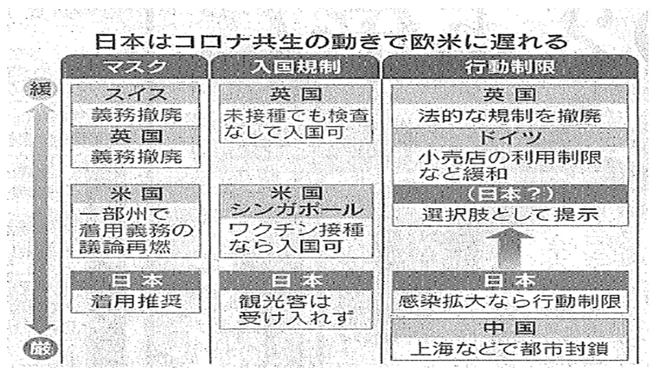 ・日本国の状況は2022年4月28日日経新聞朝刊「ウィズコロナ 世界に遅れ」からすると図の通り