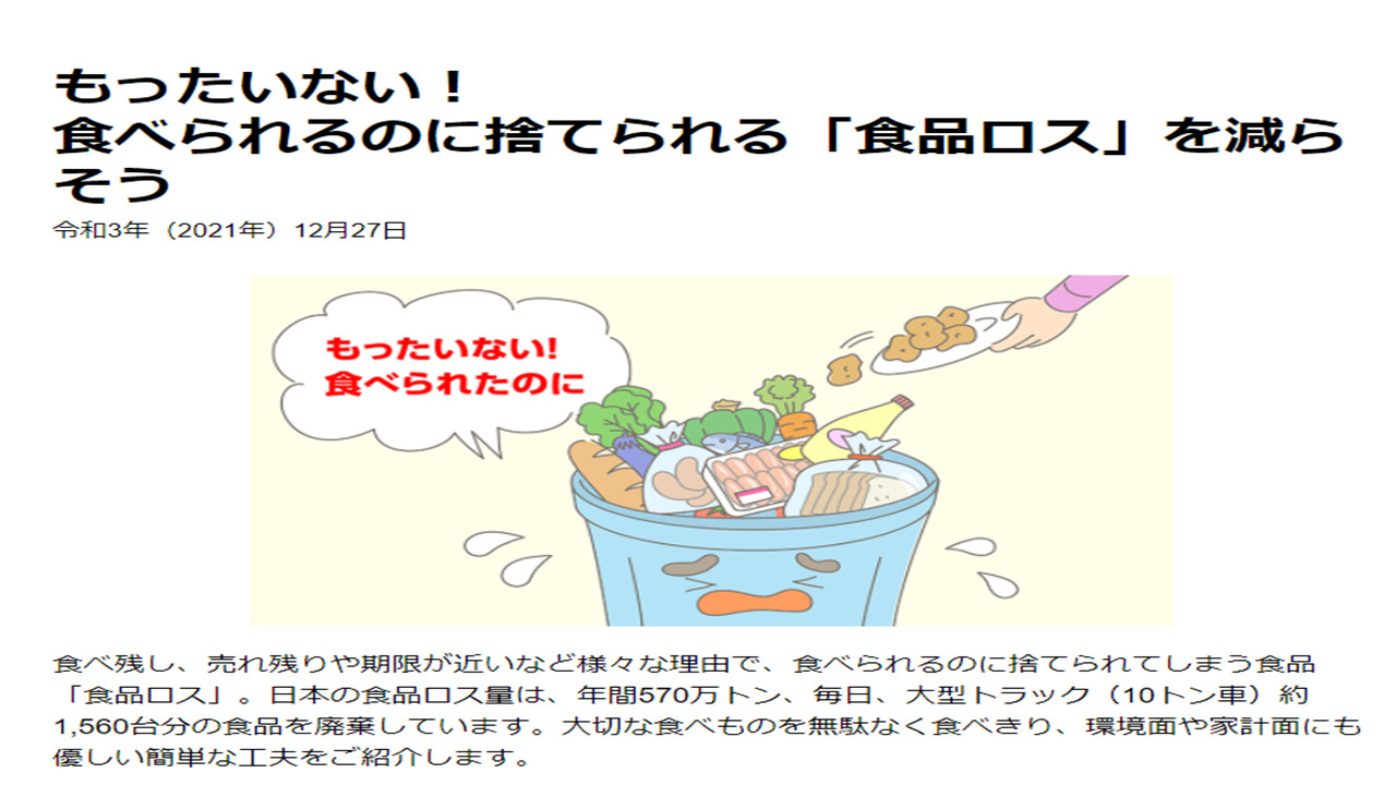 政府は食糧難に備えて食品ロス対策を進めています。