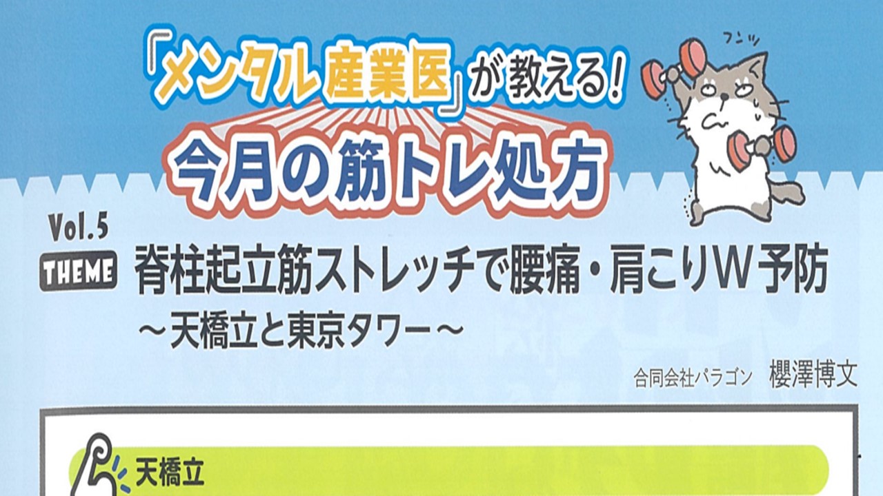 メンタル産業医が教える! 今月の筋トレ処方 Vol.5脊柱起立筋ストレッチで腰痛・肩こりW予防 ~天橋立と東京タワー~