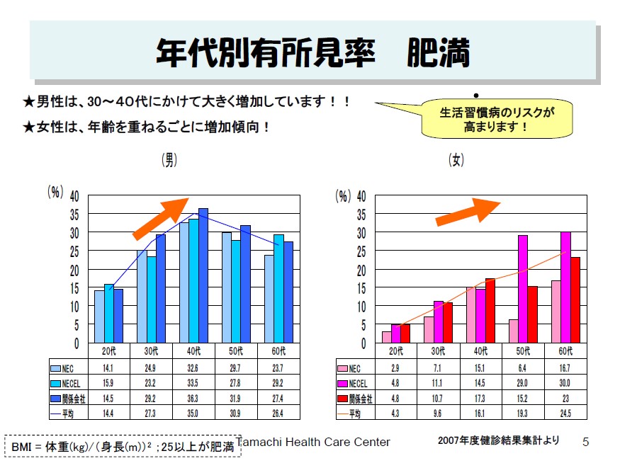 ・2010.11とNECでは 更に 30才から いわゆるメタボ健診を実施していることも知りました。30才から介入しないと遅いということも学びました。