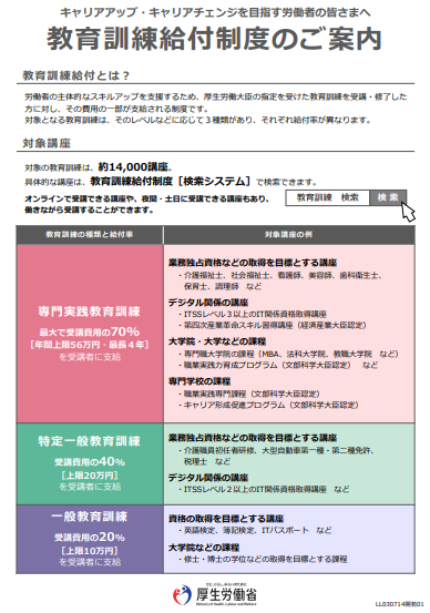 参考サイト:産業医による健康経営対策㉘|拡充された教育訓練給付金制度