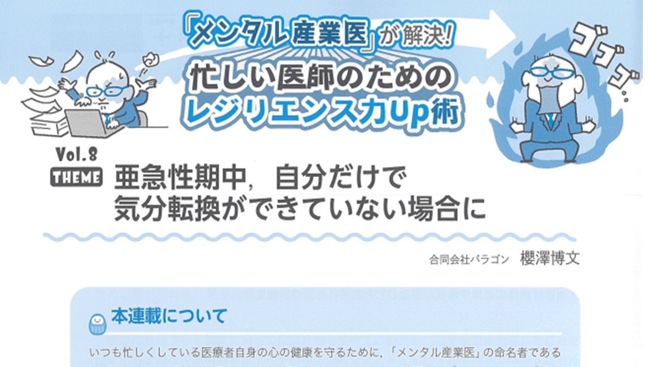 『メンタル産業医』が解決! 忙しい医師のためのレジリエンス力Up術vol.8