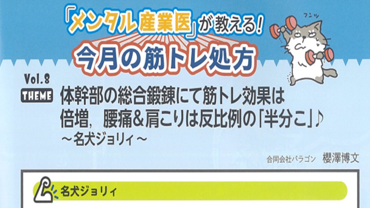 メンタル産業医が教える! 今月の筋トレ処方 Vol.8 体感部の総合鍛錬にて筋トレ効果は倍増,腰痛&肩こりは反比例の「半分こ」♪~名犬ジョリィ~