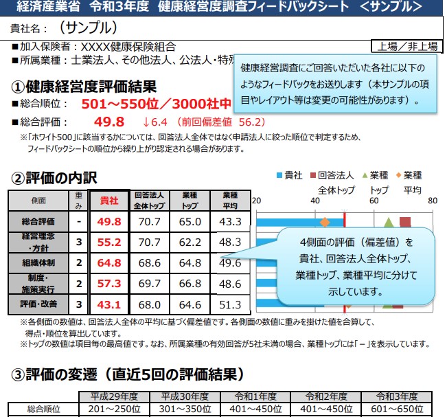 2022年度以降、それまでの健康経営度調査と異なり、ストレスチェクは80項目版ではトップランカーには十分ではないとの判断がされるようになりました。健康経営度調査での総合評価はいわば、その企業の働きやすさに関する偏差値です。