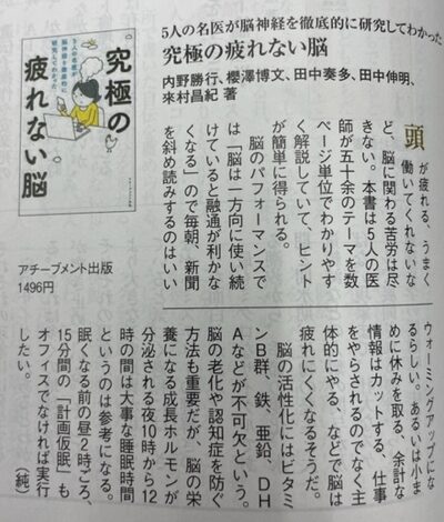 メンタル産業医の命名者である合同会社パラゴン(東京都港区)代表の櫻澤博文も共著者として参画した「究極の疲れない脳」(アチーブメント出版)を書評で取り上げてくださいました。