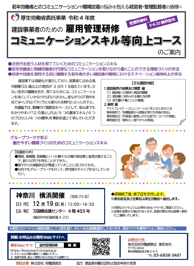 2022年11月25日に東京都で開催される以下の「コミュニケーションスキル等向上コース」 に加えて、