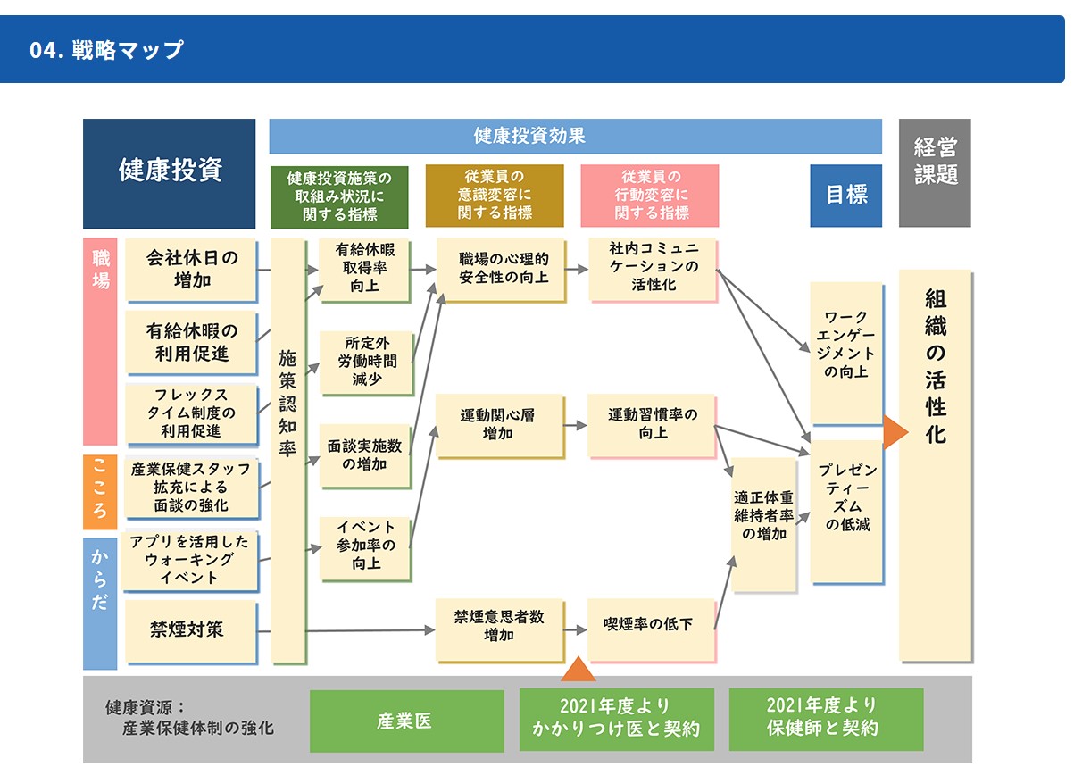 健康経営は当たり前、健幸経営を推進するのが良いと提案している契約先でも、以下のように惜しげもなく、自社内の体制やフローを開示されているところはございませんでしたので。