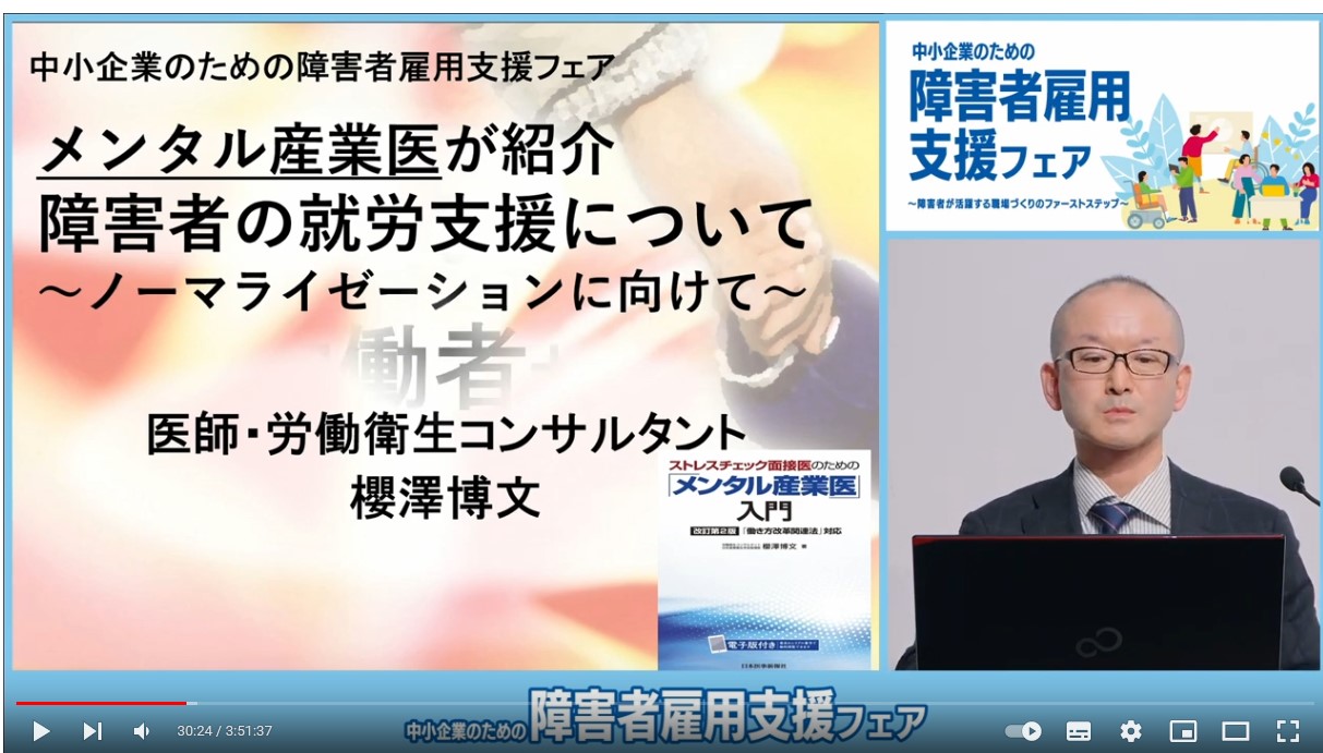 講演① メンタル産業医が紹介 障がい者の就労支援について 〜ノーマライゼーションに向けて〜 を担当しました。