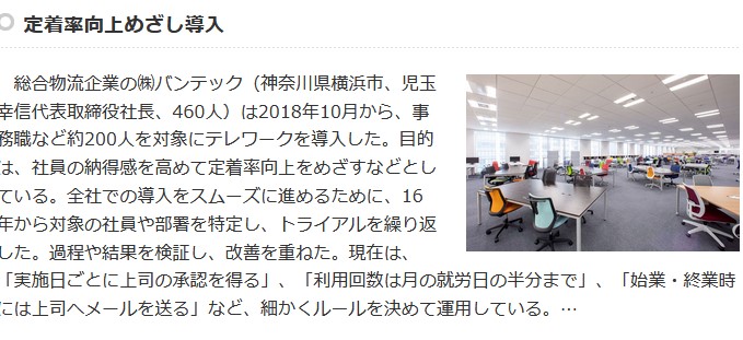 2019年10月とコロナ禍前からテレワークによる在宅勤務を推進例