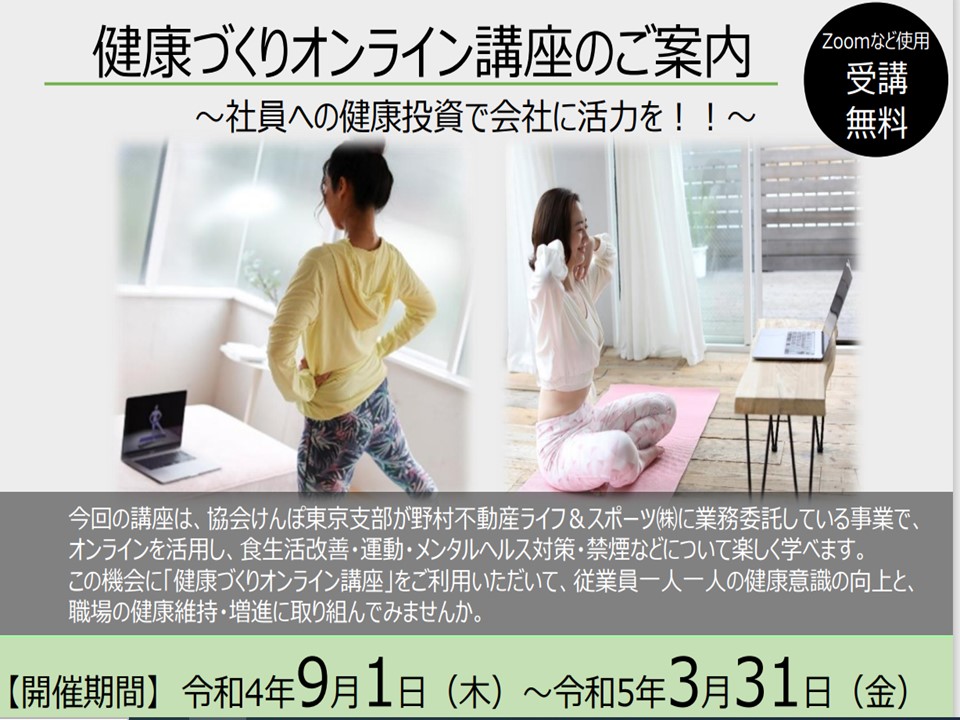 その 協会けんぽ 東京支部は「健康づくりオンライン講座」を提供しています。