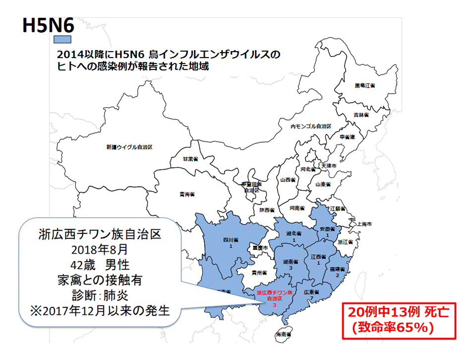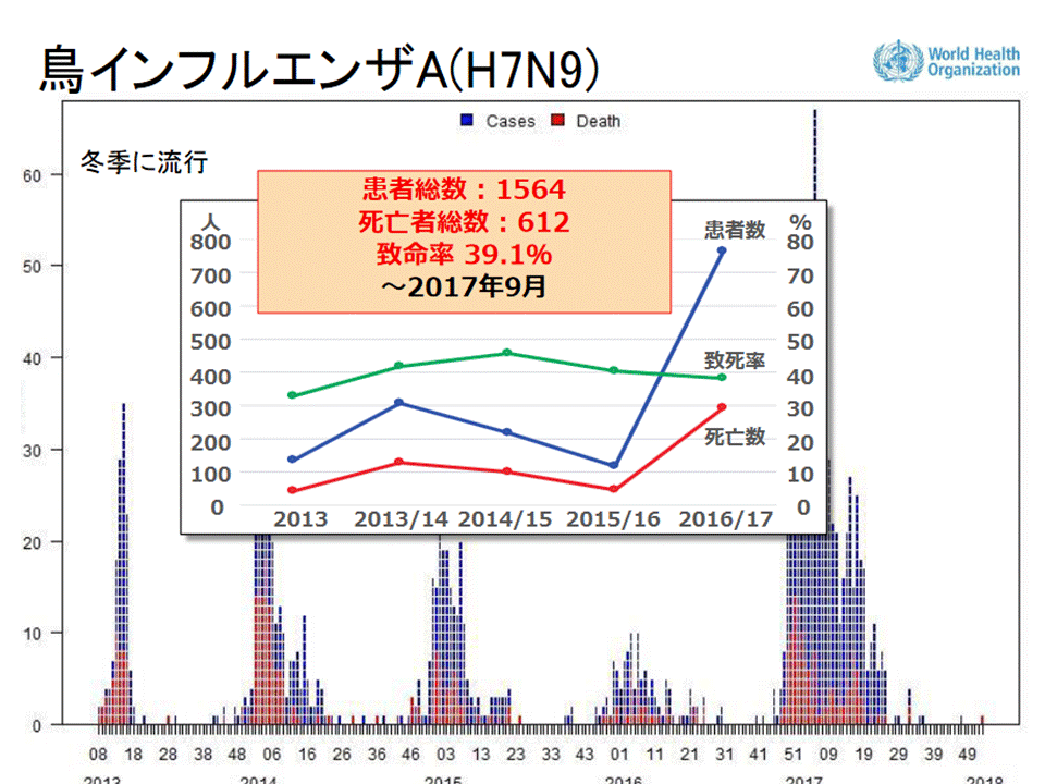 2017年6月16日に日本国外務省は、中国、香港、マカオで患者数増加のため家禽類に接触することを注意させる情報を発令しました。