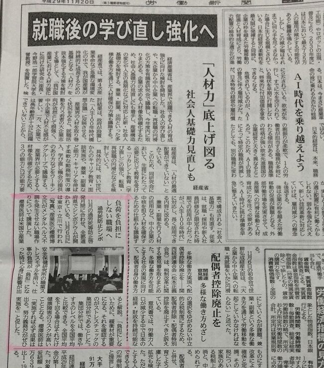参考サイト:労働新聞.負荷を負担にしない職場へ 過労死防止シンポ.2017年11月23日