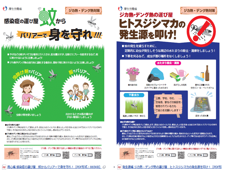 対策情報は厚生労働省が参考サイト:「ジカウイルス感染症について」としてまとめています。