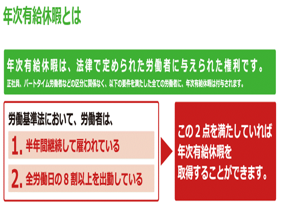 2018年7月26日に成立・公布された働き方改革関連法によって使用者は、10日以上の年次有給休暇 が付与される 全ての労働者に対し、毎年5日、時季を指定して年次有給休暇を与えることが労働基準法に盛り込まれ2019年4月1日から施行されることになりました。