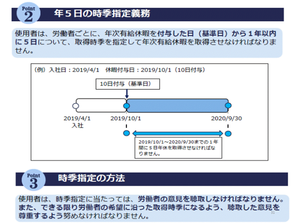 ポイント6は、就業規則に、年次有給休暇の時季指定に関する項目を規定しなければならなくなりました。