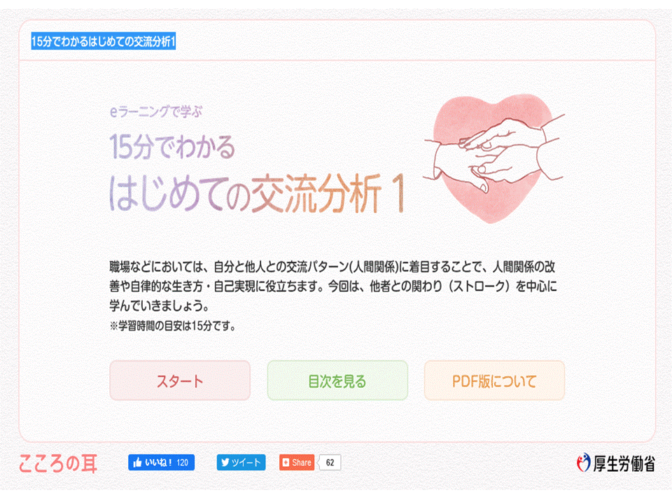 働く人のメンタルヘルス・ポータルサイトである「こころの耳」 に『Eラーニングで学ぶ「15分でわかるはじめての交流分析」&クイズ』が設置されました。