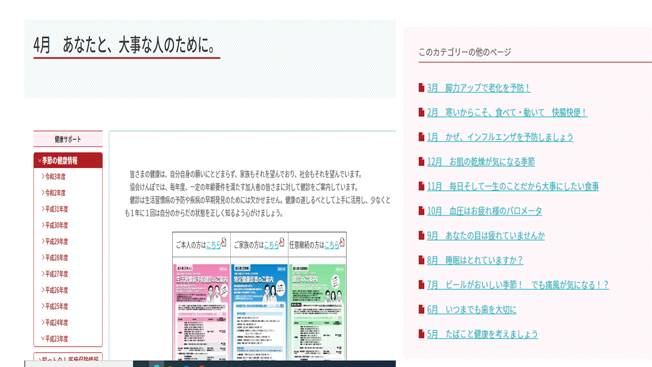そこには、平成23年4月号の「あなたと大事な人のために。」から毎年、毎月、その内容を変えた健康情報が収集かつ提供されています。