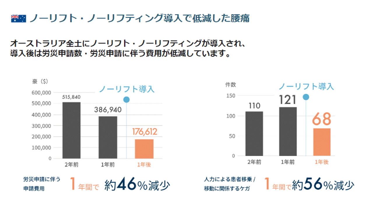 作業管理としても、人力での持ち上げを禁止し、自分が患者にならないように道具を活用し、病院や施設に「新しい習慣を根付かせる」という労働安全衛生の3管理に則った 働きやすい職場づくりの一例でもあります。