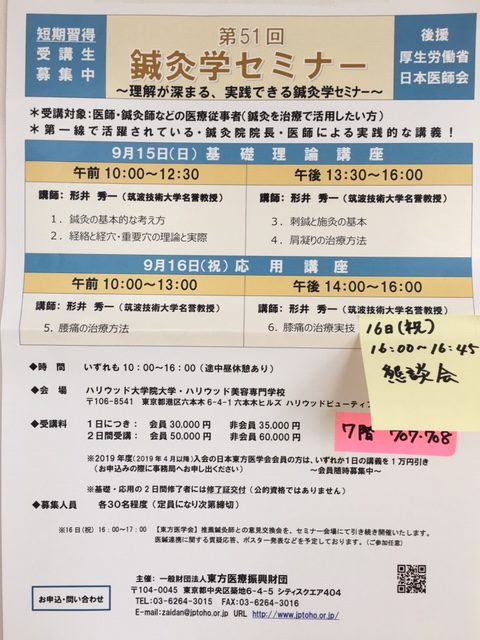 (一財)東方医療振興財団主催の第51回鍼灸学セミナーがありました。