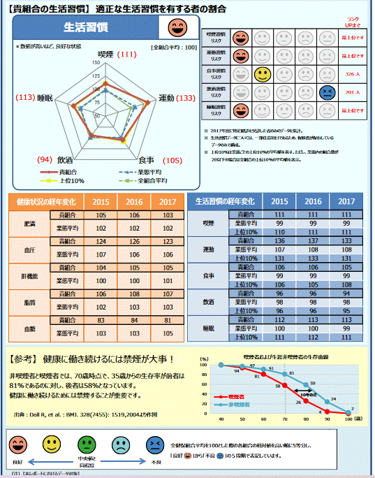 そして80項目版の「新職業性ストレス簡易調査票」は,「集団分析」といいますが,自社内のみならず全国統計とで自社の位置をあたかも偏差値のように比較することもできますし,同業者の中での位置づけや,自社の中であれば部署単位,部門ごとの比較,年次評価,男女別評価や,入社年ごとの評価,職能別評価といったように,さまざまな切り口で皆様方の会社の従業員のストレス具合や前向きさといったものを比較することができます.ストレスチェックをした後,やりっぱなしの企業も多いかと思いますが,労働者1人1人のデータを集めるとそれは経営分析に使えるような優れたデータです.この分析を皆様方がする必要はなく,ストレスチェックを提供する実施者,提供する機関にお任せすると,企業によってはそういう経営分析みたいなことまでやってくれます.独立行政法人労働者安全健康機構(以下、機構)による「職場環境改善計画助成金」という助成金制度も,企業規模の大小問わず利用ができます.すなわち,帰属意識やモラールを把握するサービスを提供するコンサルタント会社がいくつもありましょうが,それらにお金を使わなくて済むようになります.なおストレスチェックを実施することに対しては,常時雇用する労働者が50名未満の会社に限り,助成金制度が同じく機構から提供されていますので,実質負担ゼロでストレスチェックを従業員に提供できます.