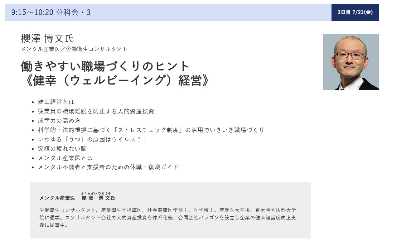 患者を待つ医師のように健康相談を待つような姿勢ではなく、新たな概念で語られる健康経営推進産業医やクラウド産業医は、組織に内在する健康課題を、それらが顕在化する前の潜在的段階から把握し、そして改善する戦略を立案し、企業側に実行させるマネジメント力が不可欠だとされました。